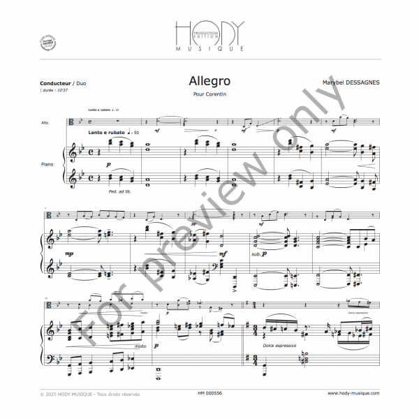 Je dédicace également cet Allegro à l'altiste Sophie Mangold, brillante interprète qui a œuvré avec talent à la redécouverte de l'Adagio de G. Dessagnes, recréé au Théâtre Dullin de Chambéry le 25 juin 2022.
